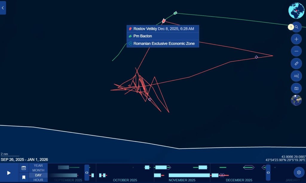 În toamna-iarna anului 2025 și la începutul lui 2026, vestul Mării Negre începe să arate tot mai clar ca un spațiu utilizat nu doar pentru tranzit comercial, ci pentru staționare planificată, sincronizare și, foarte probabil, pentru operațiuni logistice opace orchestrate de Rusia.